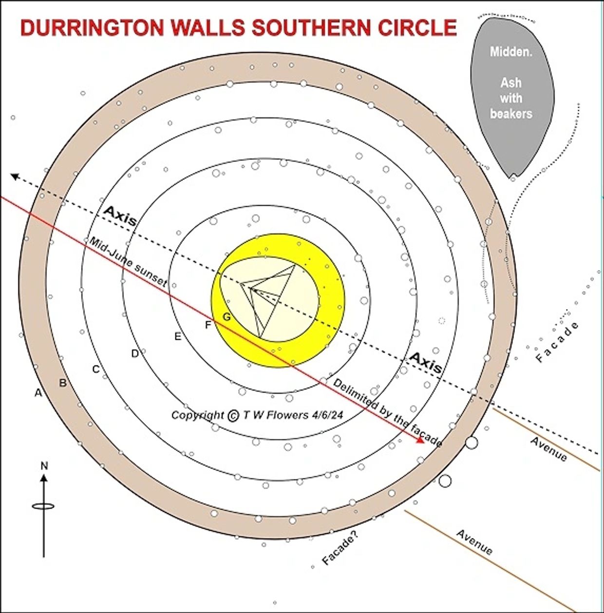 The Southern Circle is intricately connected to Stonehenge via the river Avon and Stonehenge Avenue. Its outer Ring A is based on the same three-ring principle as the nearby Ring A of Woodhenge, which overlooks it, and the beautiful stone ring of Callanish on the Scottish Island of Lewis.